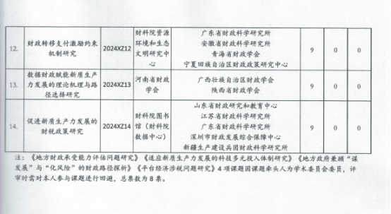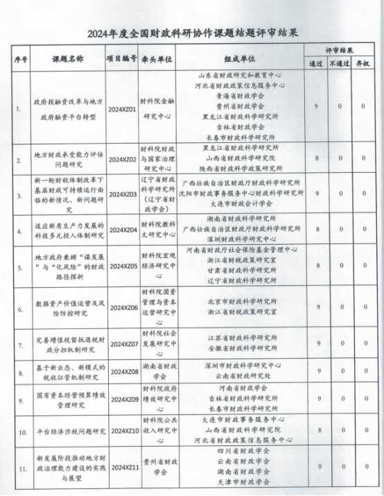 近日,2024年度全国财政科研协作课题结题评审工作结束,我院张敏翔老师主持的“数据财政赋能新质生产力发展的理论机理与路径选择研究”(项目编号2024XZ13),我院部分教师参与的“国有资本经营预算绩效管理研究”(项目编号2024XZ09)顺利通过评审。