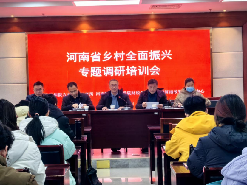 12月16日下午,河南省社科院从村发展研究所、河南财政金融学院财税学院、联政府预算绩效管理研究中心合作共建的河南省乡村全面振兴专题调研组,正式启动2026年度河南省乡村全面振兴专题调研培训会。省社科院农村发展研究所所长陈明星、财税学院党总支书记全胜奇、政府预算绩效管理研究中心主任李硕、财税学院党总支副书记宋茜、政府预算绩效管理研究中心副主任安娜、省社科院农村发展研究所助理研究员张坤,以及学院相关老师和80余名学生参会。此次培训会由李硕主任主持。