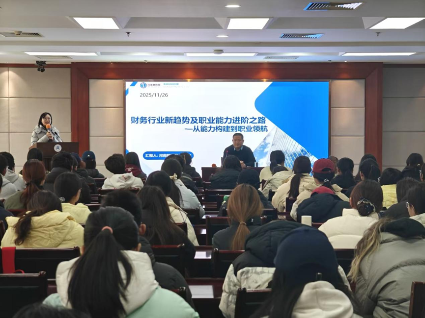 为帮助我院学生了解行业发展趋势,科学合理制定自己的职业生涯规划,12月9日下午,我院邀请中国税务网河南站负责人、河南财税网创始人丁德刚,在象湖校区行知楼3136会议室举办题为“财务行业新趋势及职业能力进阶之路”的专题讲座,讲座由税收教研室主任赵卓亚主持,我院税收学专业部分在校学生聆听了讲座。