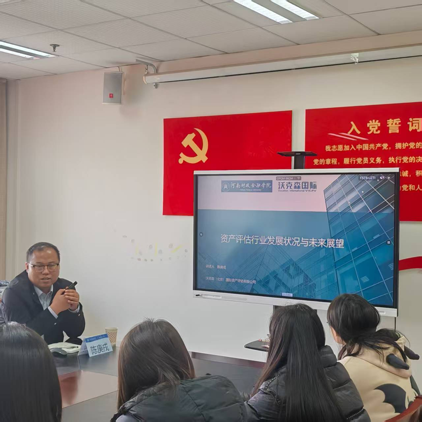 12月1日下午,河南财政金融学院资产评估行业校友会与我院联合举办行业校友导师制启动仪式暨专题师生交流会。评估行业校友会名誉会长王建军、秘书长徐永辉与校友代表陈庚戌、吕清杰、轩展望、高一鸣、龚子峰等应邀出席,副院长万新亚、资产评估教研室主任刘绍涛及2023级资产评估专业13名学生代表共同参加。